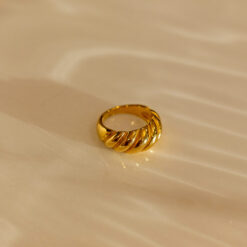 This ring looks stunning on its own, or combined with other gold rings. Stack it with another bold gold ring to add drama and flair. Add a couple thinner bands to another finger to add dimension. Goes with any and every outfit. Infinite ways to style it. This twist ring is a must-have in your jewelry collection.
