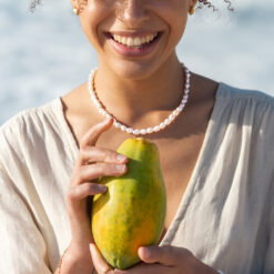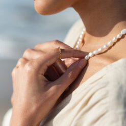 If you’re looking for a genuine, real pearl necklace for women, you can stop searching. Our Large Natural Pearl Necklace is a must-have for anyone, as it’s versatile and can be worn in many different ways. Each pearl measures 7-8mm and the necklace features an adjustable chain to make it easier to layer with other necklaces. The chain is crafted with medical-grade stainless steel and coated in real gold, so say good-bye to allergic reactions!