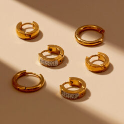 With this set of small gold hoops, we’ve got you covered no matter what look you’re going for. Want to add some brightness and excitement to your outfit? Go for the rhinestone-encrusted pair. Looking for a bold yet understated look? Try the bold mini hoops. Want a minimalist look that still gives you a pop of colour? The classic small gold hoops are the perfect option.